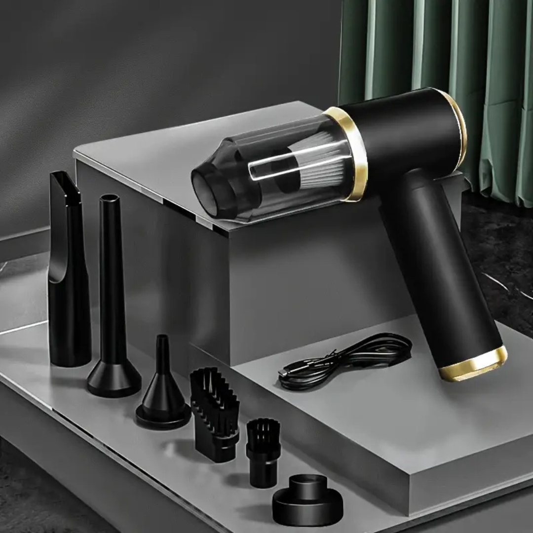 Esta mini aspiradora de mano es perfecta para mantener todo impecable. Con su funcionalidad tres en uno (aspiradora, ventilador de aire y bomba de mano), puedes limpiar tu coche, inflar objetos o quitar el polvo de rincones difíciles. Es la herramienta definitiva para una limpieza rápida y eficiente.